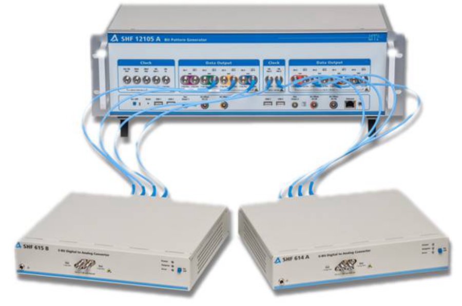 ??? SHF公司,2016年9月重磅推出全球領(lǐng)先的512G超高速碼型發(fā)生儀SHF12105A,8通道同步并獨立可調(diào)(單通道碼率6~64Gbps),最高容量可達(dá)到512Gbps,為下一代400G/1T光通信系統(tǒng),模塊和器件研究、開發(fā)和測試提供了強(qiáng)有力的硬件支撐,結(jié)合配套的外置模塊(DAC模塊及MUX模塊),可實現(xiàn)高帶寬(>60G波特)AWG(任意波形發(fā)生)功能以及單通